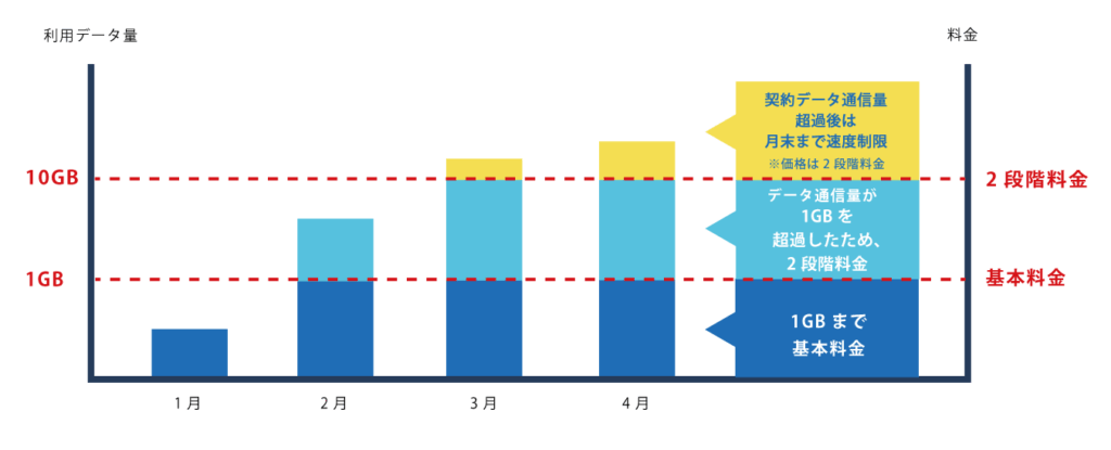 - 二段階定額プランイメージ【1GBと10GBの二段階プラン】